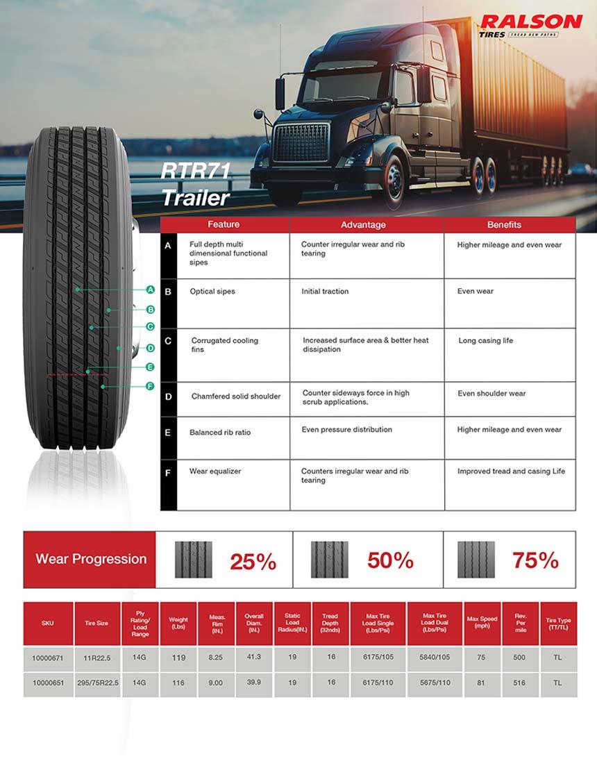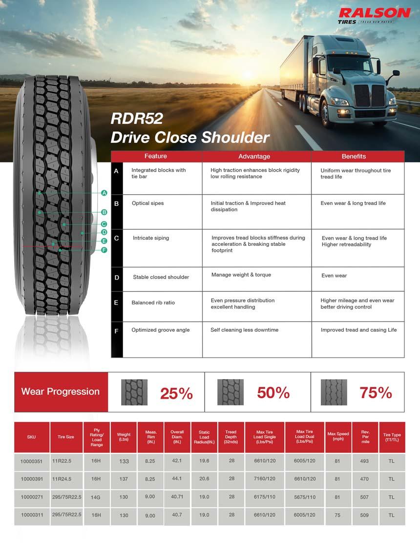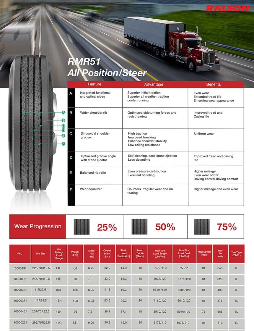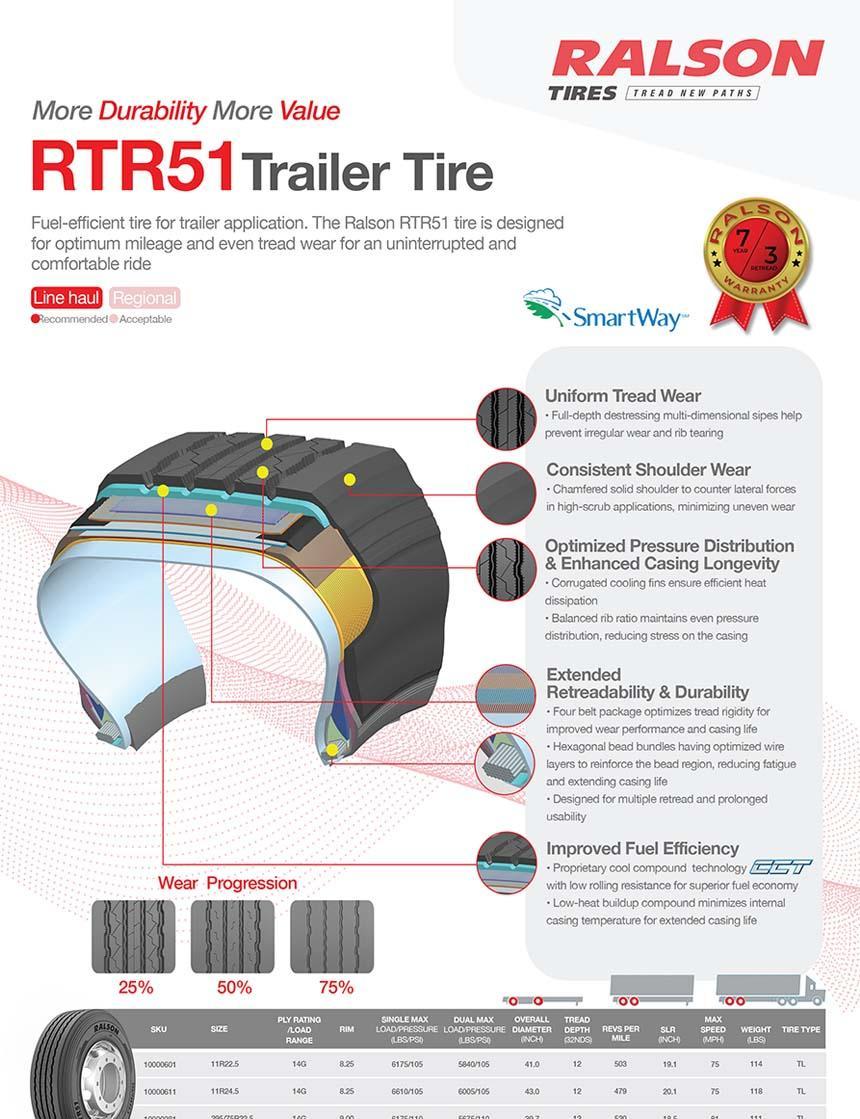 Catalogs & Spec Sheets We’ve gathered some materials to help you better understand our commitment to producing a quality product while also offering dependable services to back these products up. RTR71 RTR51 RDR52 RMR51 RDR55 RAC55 Truck Tire Guide